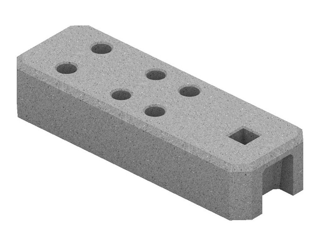 Betonová patka díky své vysoké hmotnosti zajišťuje výbornou stabilitu plotu. Praktické otvory usnadňují manipulaci při montáži i přepravě a zvyšují komfort při instalaci.